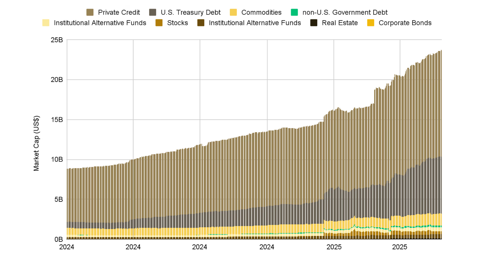 Institutional capital is increasingly seeking predictable, onchain yield. As a result, we’ve seen the total RWA market grow to over $35 billion as of November 2025. Tokenized U.S. Treasuries, the leading RWA use-case, have surged to over $8 billion in total market cap in 2025.