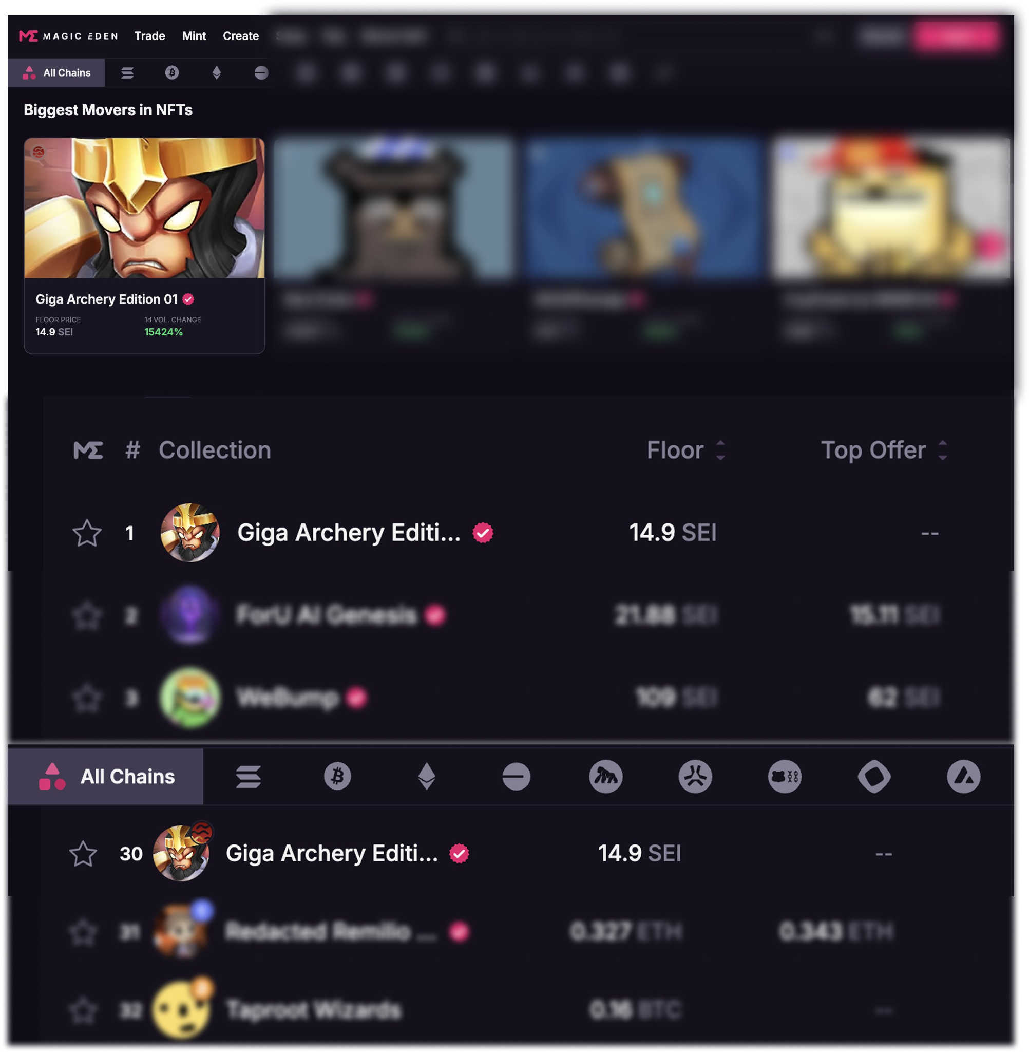 Archer Hunter's Giga Archery Edition 01 collection on Magic Eden exemplifies this potential as one of the top-trading NFT collections on Sei. These NFTs represent heroes and in-game assets that evolve with player progression—transforming from static collectibles into living assets that upgrade through gameplay. These games naturally incorporate evolving NFTs, whether it's character upgrades in Archer Hunter or cars that improve over races in Astro Karts. Even Sei's NFT marketplaces, such as Dagora and Pallet, benefit from the network's speed, allowing for real-time updates of NFT listings and trades.