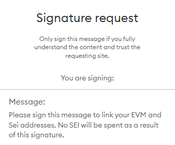 If you currently have an "0x" address and wish to onboard to Sei from a CEX, you will need to find your corresponding Sei address first, by linking your wallet as shown previously in this guide.