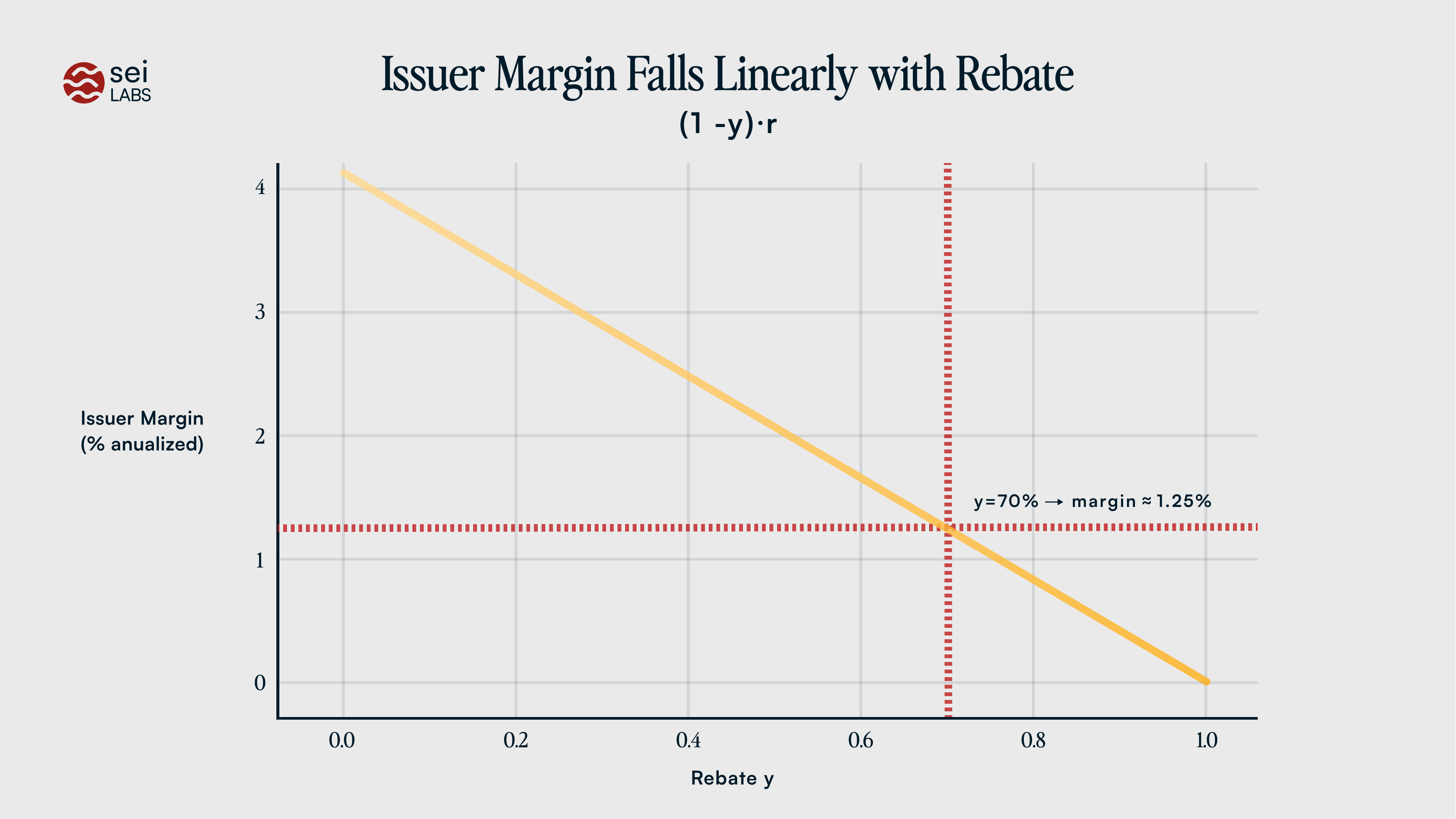 Interpretation: rebate \(y\) is the price instrument; higher \(y\) attracts users, but leaves less carry to the issuer.
