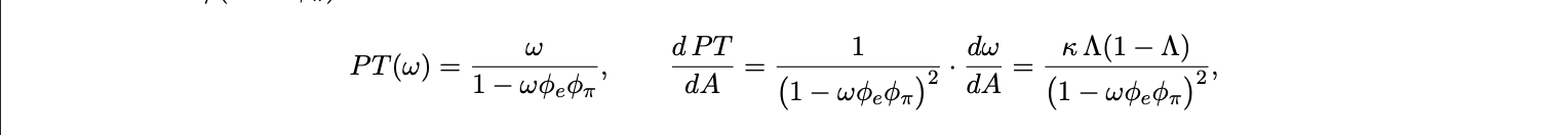 where Λ = Λ(α + κA + µR + ψ ′ Z) and ω = Λ so adoption raises pass-through and does so convexly in ω due to policy feedback.