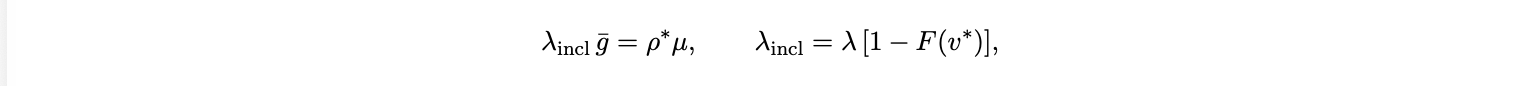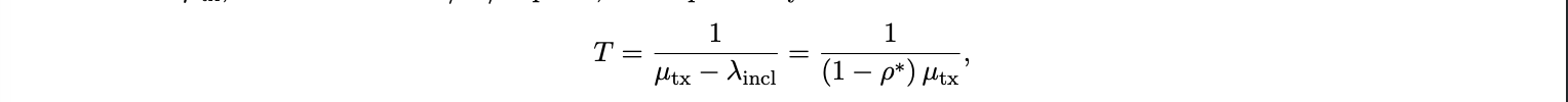 where F is the CDF of value of time vi and v ∗ is the marginal cutoff for inclusion. Intuitively, transactions with higher vi bid in, those with lower vi wait. With effective arrival λincl and service µtx , modeled as an M/M/1 queue, the expected system time is