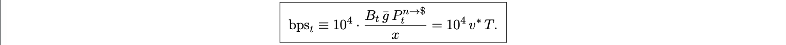so that T is finite and pinned by the utilization target ρ∗ . The protocol design keeps queueing delay roughly constant, which means base fees must adjust to keep ρt near ρ∗ . Let Bt be the base fee and Ptn→$ the USD price of the native token. A marginal included transaction with average gas ḡ is indifferent when the dollar cost of waiting equals the dollar cost of inclusion: