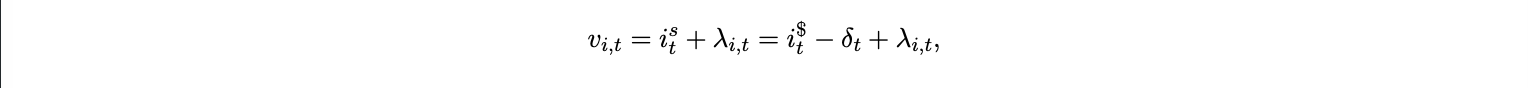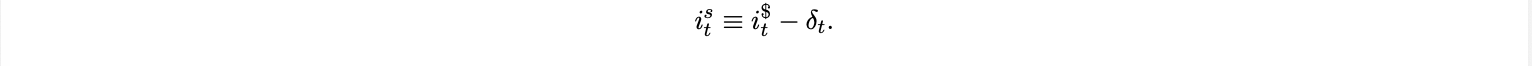where iFt is the domestic short rate, ist the stablecoin yield (linked to the USD short rate i$t ), and Φt ≥ 0 captures regulatory, compliance, or cross-border friction costs that scale with stablecoin use. In equilibrium, risk neutral arbitrage between the two cash like instruments implies a modified interest parity condition.
