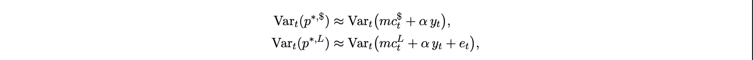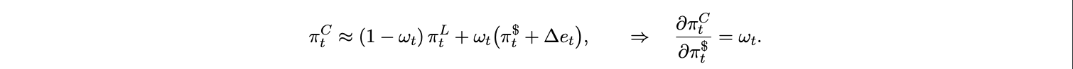Proposition 2 (Endogenous ω). Under the previous equation, the equilibrium USD pricing share ω is increasing in exchange rate volatility and in adoption A. As stablecoin adoption lowers Γ(A), more firms choose to price in dollars, raising ω and amplifying the CPI pass-through t$ from Proposition 1.
