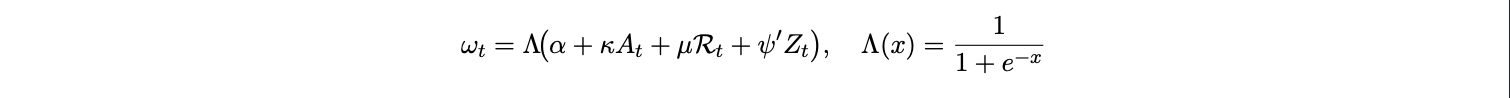 Stablecoin adoption is the mechanism that moves ωt . Denote by At a country time adoption intensity. We parameterize the USD pricing weight as a logistic map: