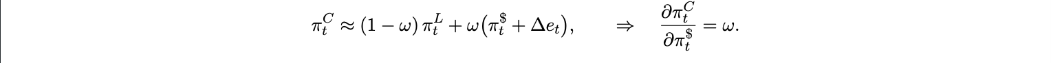 Let ω denote the base period expenditure share on USD priced items evaluated at the linearization point.