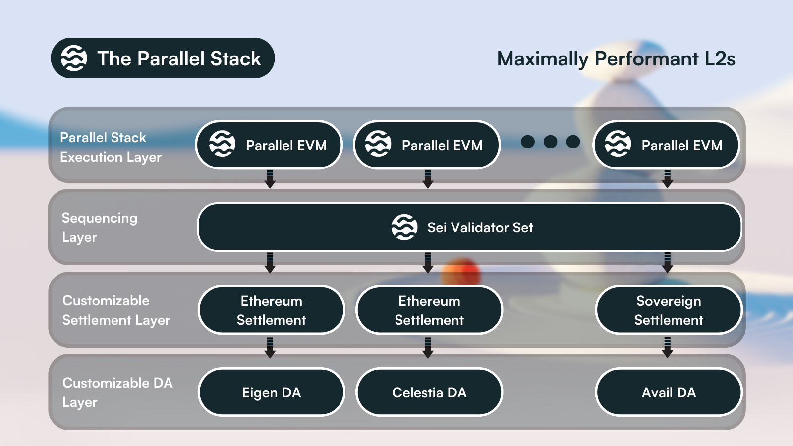 This is primarily achieved by capitalizing on advances in modern hardware, with a clear opportunity to drastically reduce transaction fees and elevate the user experience across all Layer 2 rollups and applications developed with this new framework. As a fully open-sourced public good, the parallel stack offers a rich foundation for builders around Ethereum, empowering them with unparalleled customization capabilities while anchoring on the robust security features of Ethereum or any chosen data availability layer. Furthermore, as part of the default Parallel Stack configuration, projects can choose to leverage Sei’s validator set to provide sequencing for their Parallel chain.