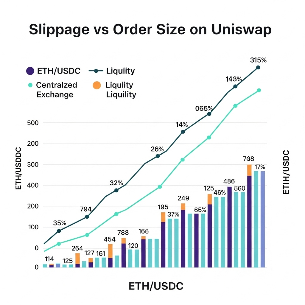 DEXs typically have lower liquidity than centralized exchanges, and their automated market maker (AMM) models create price impact for every trade. Additionally, network congestion can delay transaction execution, allowing prices to move unfavorably during confirmation periods.